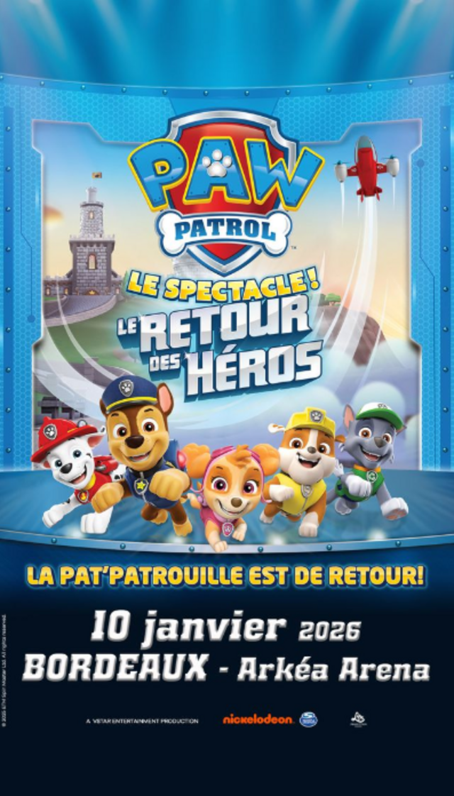 Pat’ Patrouille le spectacle ! « Le Retour des Héros » le tout nouveau spectacle évènement de la Pat’ Patrouille en tournée dans toute la France à partir du 20 décembre 2025 !