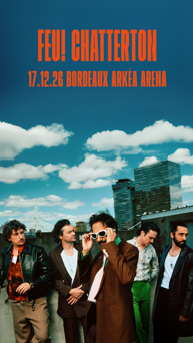 Trois ans après la sortie de leur album iconique « Palais d’argile », couronné d’un disque de platine, de multiples nominations aux Victoires de la musique, et d'une tournée triomphale, les Feu! Chatterton rallument la flamme. Ils retrouvent la scène, ce lieu électrique qu’ils envoûtent comme personne, avec cette élégance fiévreuse et cette intensité rare qui font d’eux un groupe à part, viscéralement connecté à son public.