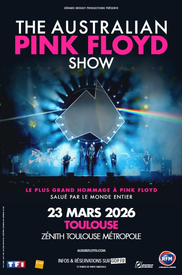 Interprétant la musique de Pink Floyd avec une perfection absolue, ce spectacle acclamé par la critique, émerveille le public du monde entier depuis plus de trois décennies. The Australian Pink Floyd Show propose un spectacle de lumière et de laser époustouflant, des animations vidéo, une technologie d'écran LED de pointe et d'autres effets spéciaux. De plus, fidèle à la tradition Pink Floyd, plusieurs structures gonflables géantes sont présentes sur scène.